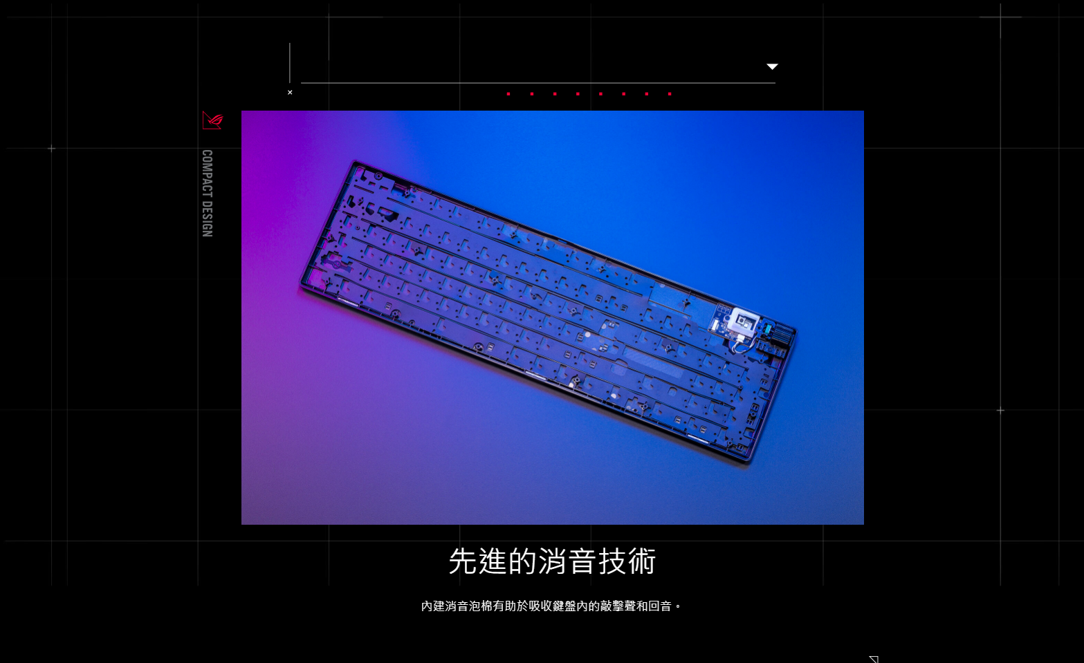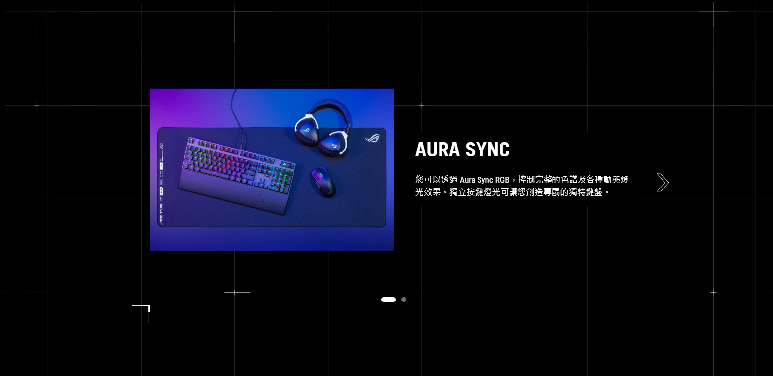 ● 獨特的 ROG 主題空格鍵: UV 塗層空格鍵具有特別的 ROG Logo 及底部配有三個 RGB LED燈