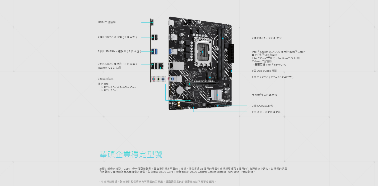 ● 超快連線: 32Gbps M.2 插槽、Realtek 1Gb 乙太網路和 USB 5Gbps 支持