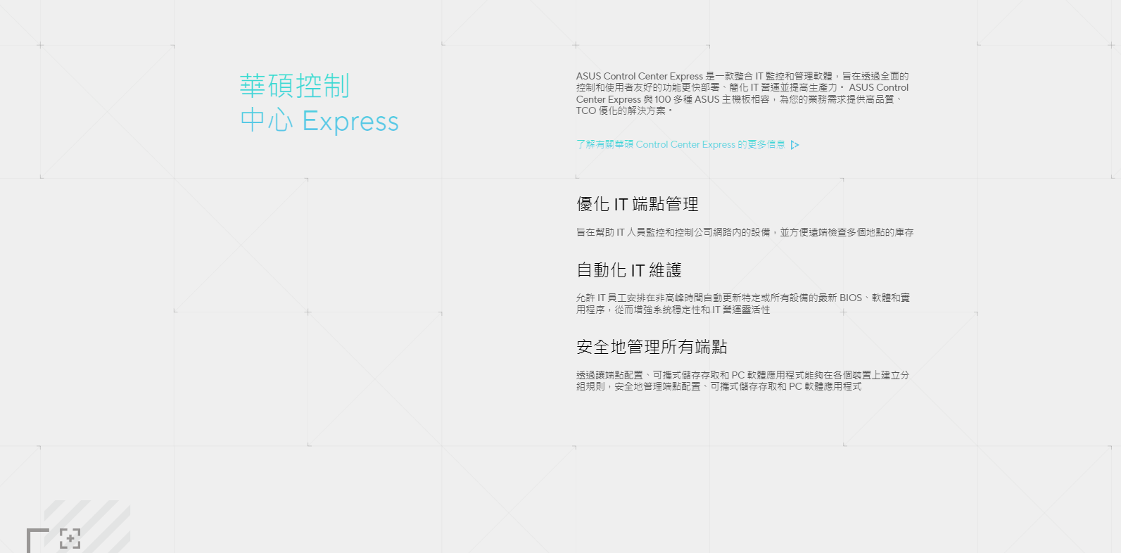 ● ASUS Control Center Express:即時 IT 監控與管理軟體,增強資料保護