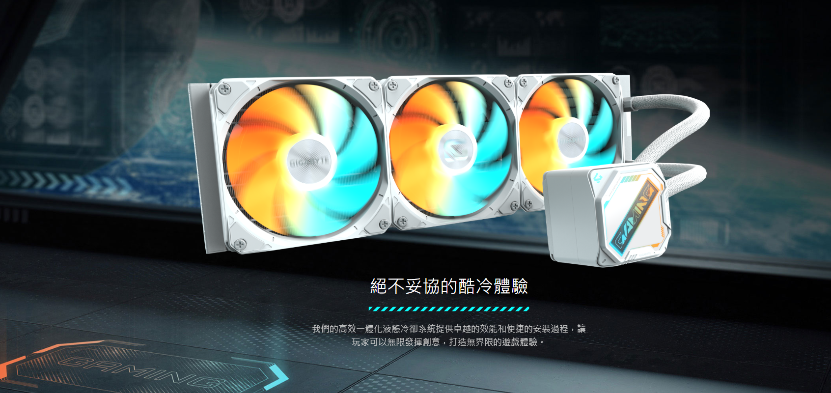 技嘉 GAMING 360 ICE(白) 飛鷹水冷/磁吸式可轉向上蓋/滑扣風扇/(註冊3+2年)