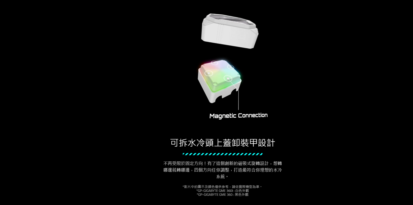 ● 磁吸式輕鬆調整水冷上蓋方向及可自行設計更換的燈板