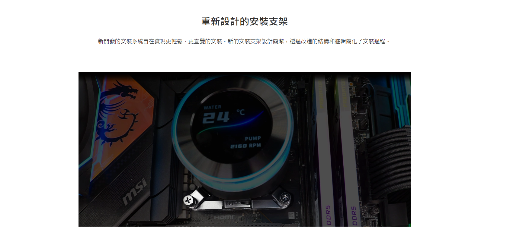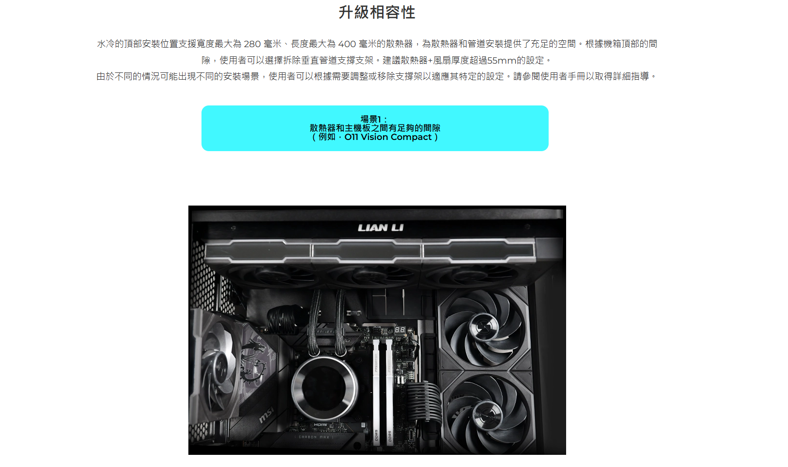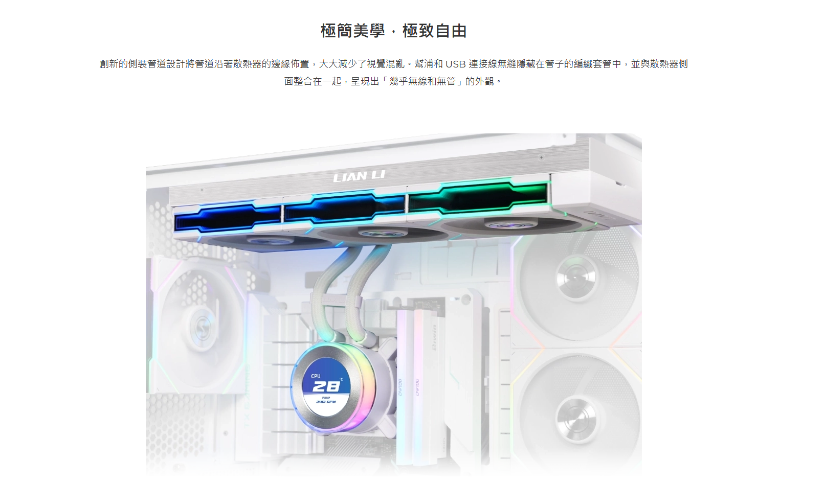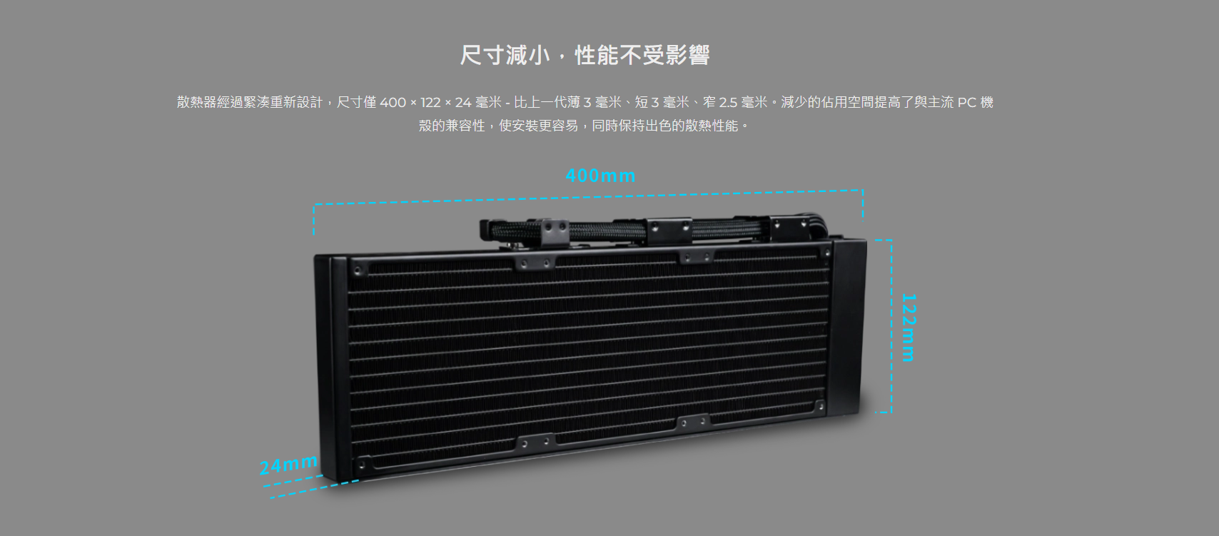 ● 纖薄的 360 毫米散熱器(400×122×24 毫米),增強了機箱相容性。