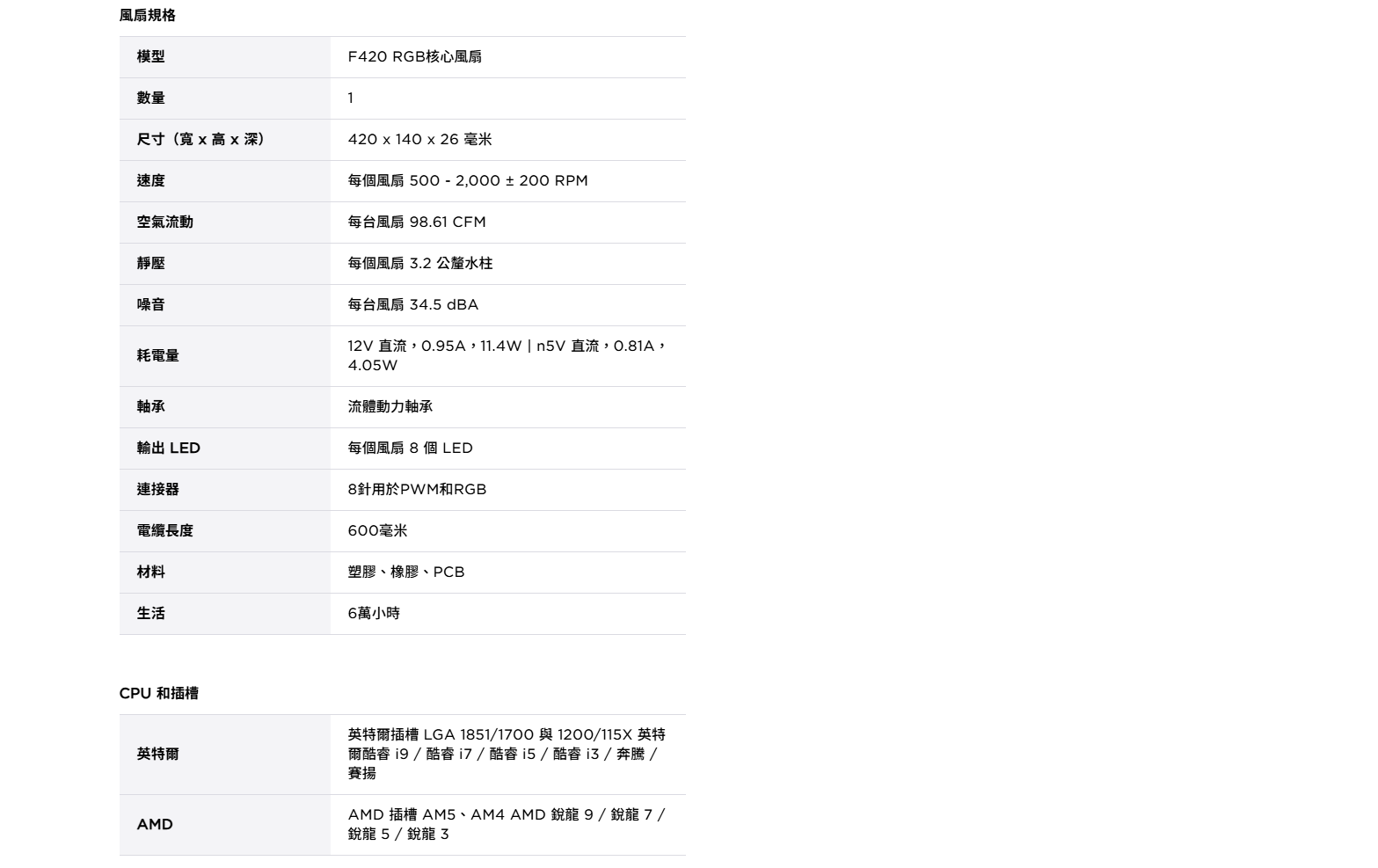 ✦ 高效冷排風扇,RGB版搭載F420 Core風扇,一體式安裝