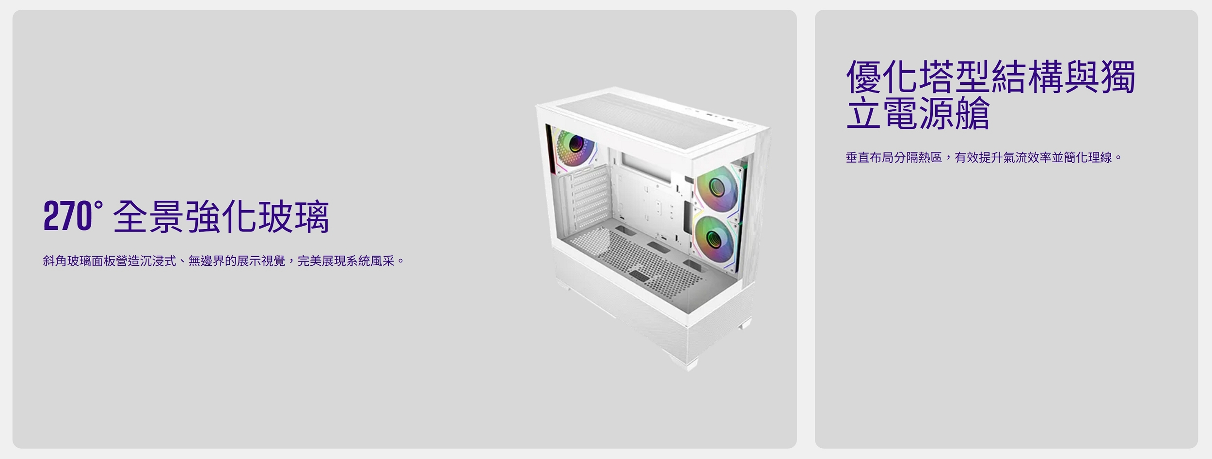 ● 優化塔型結構與獨立電源艙,支援 ITX 至 ATX 主機板