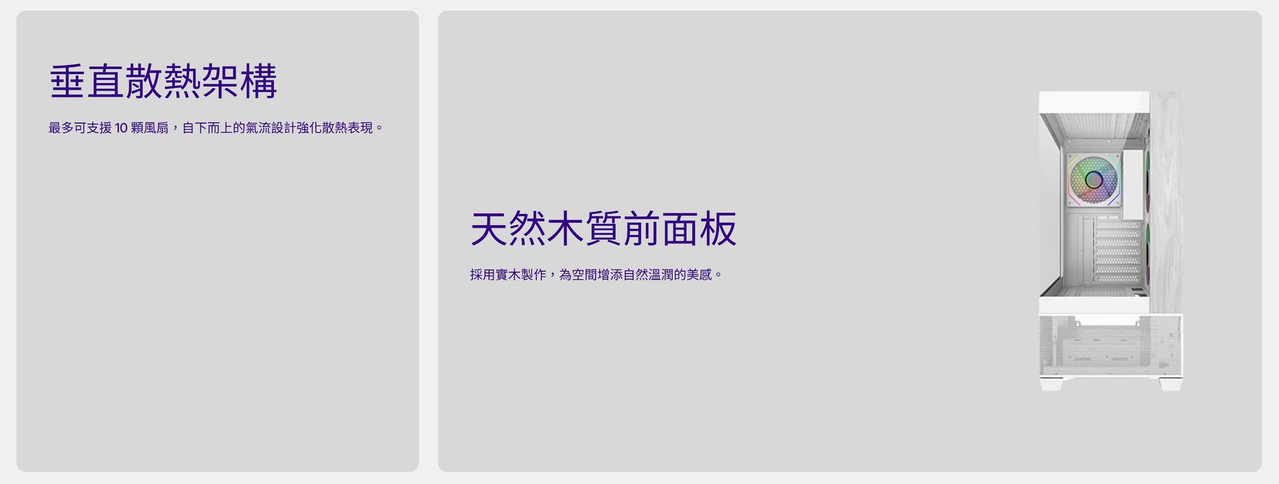 ● 垂直散熱架構,最多可支援 10 顆風扇