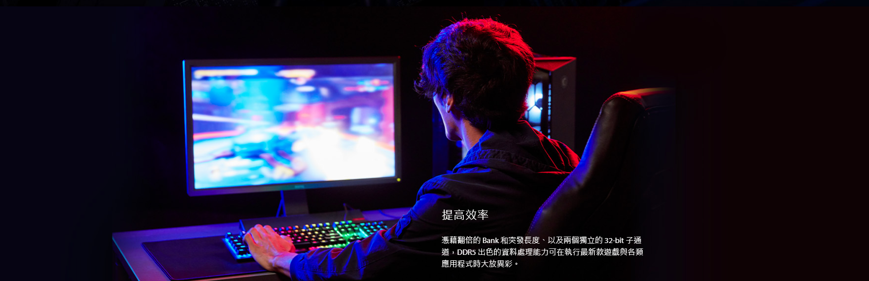 ● 藉由將 16 Bank架構翻倍至 32 Bank、突發長度(Burst Length)從 BL8 翻倍至 BL16,DDR5記憶體將帶來卓越的速度提升,大幅增進遊戲體驗和整體系統效能。
