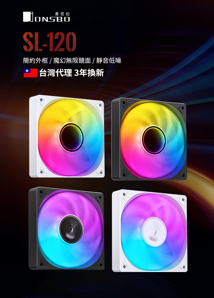 喬思伯 SL-120 白 12cm 風扇/ARGB/無限光圈軸心/1500RPM/PWM/三年保 機殼風扇