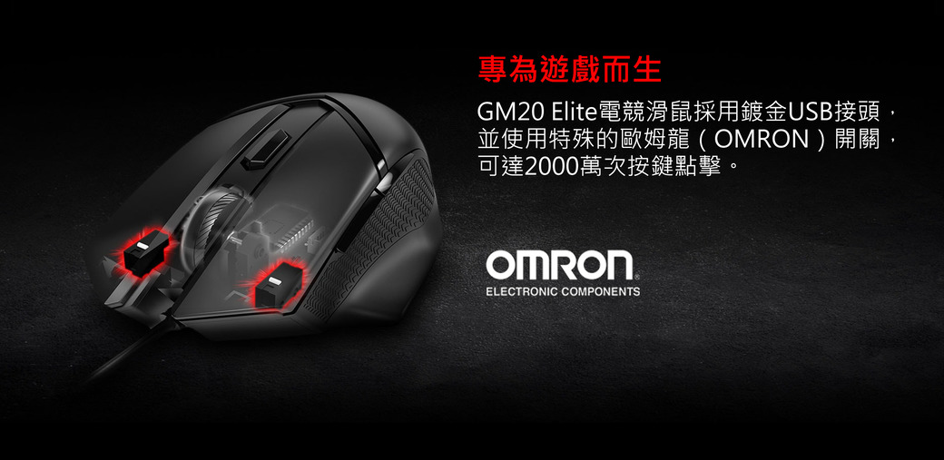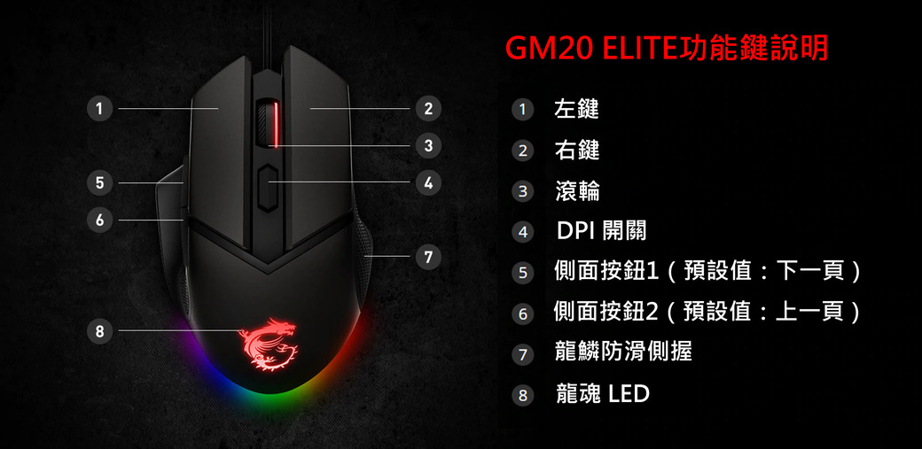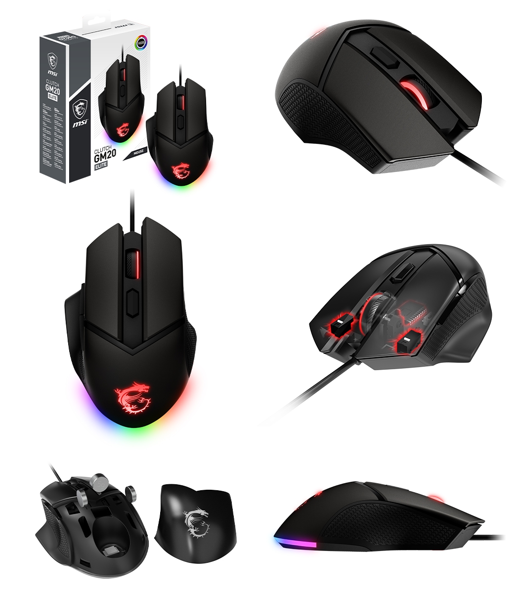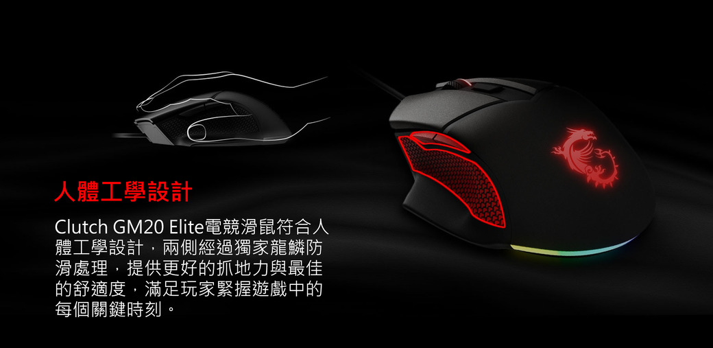 微星 Clutch GM20 Elite 電競滑鼠/有線/鍍金接頭/Omron開關/6400Dpi/Rgb