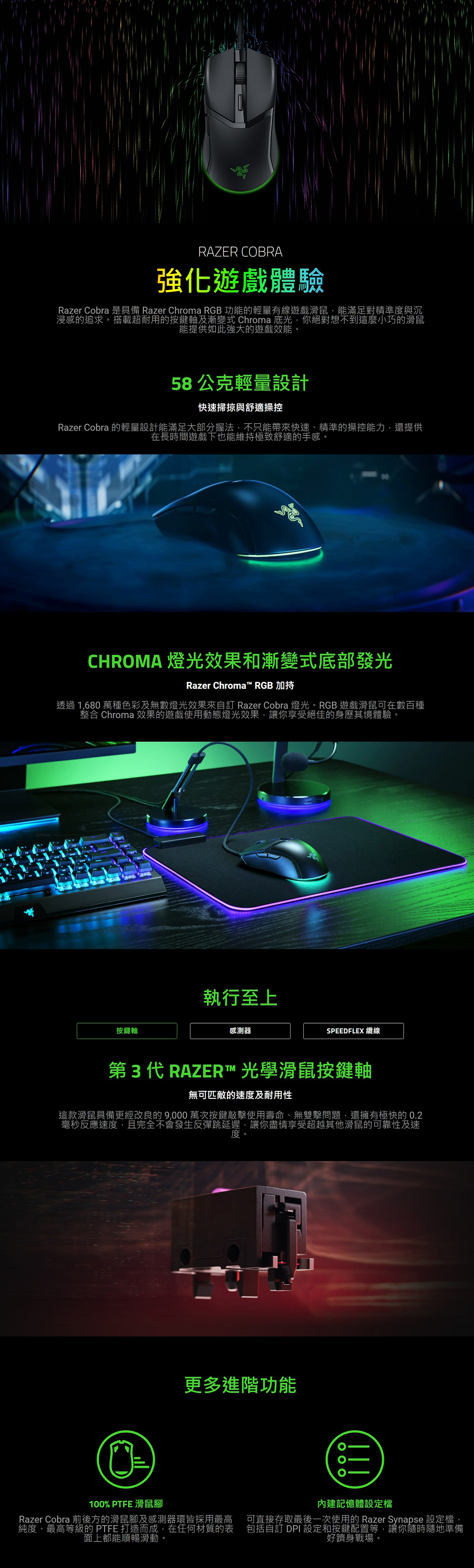 ●Razer Cobra 纜線更具彈性,設計可將拖曳阻力降到最低
