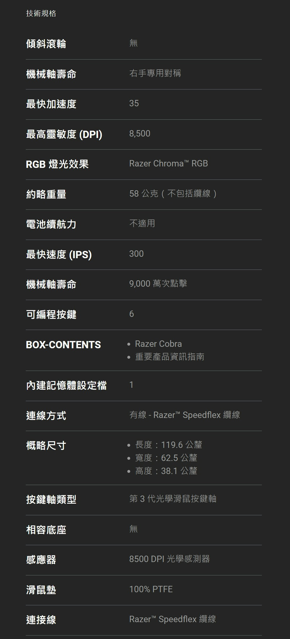 ●搭載 Razer™ 8500 DPI 光學感測器