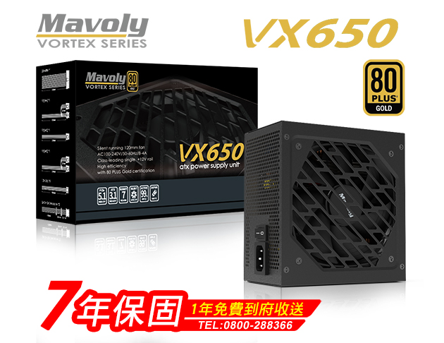 Mavoly VORTEX VX650 650W(80Plus金牌/ATX3.1(PCIe 5.1)/日系電容/七年保)電源供應器