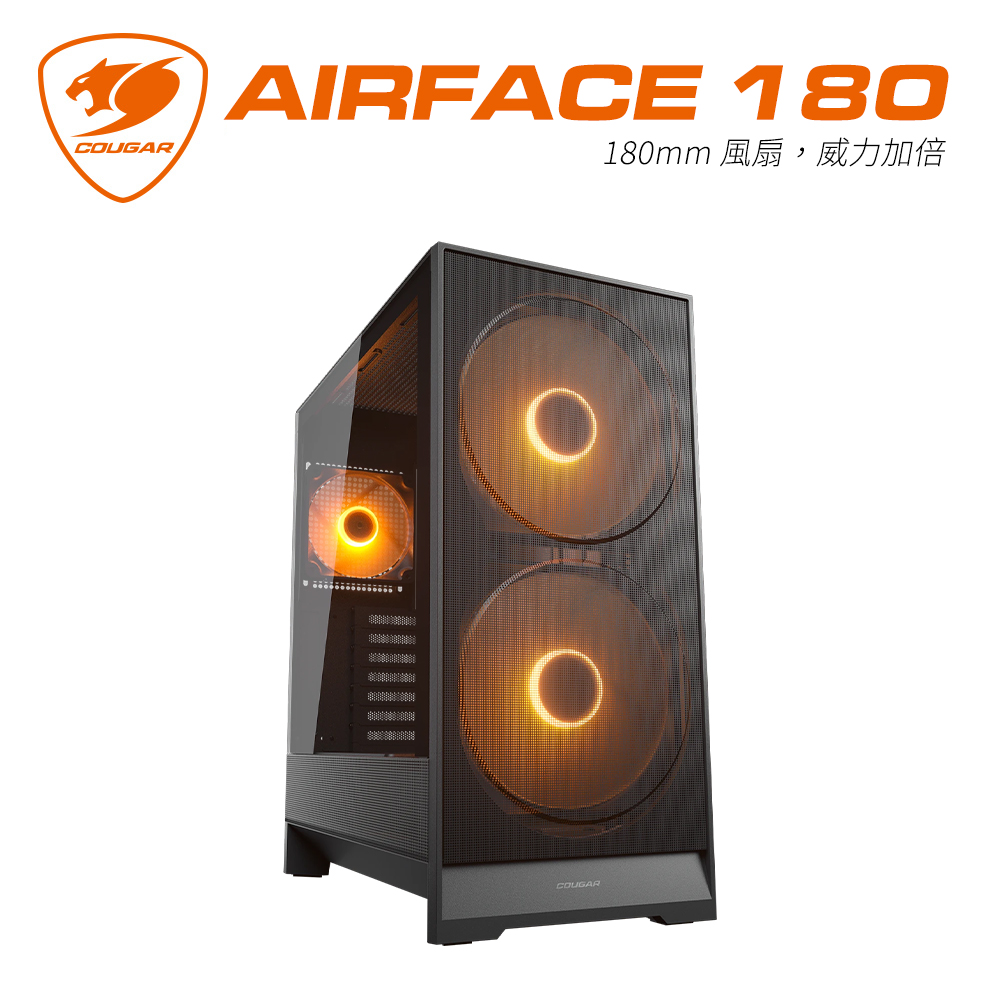 COUGAR Airface 180 黑 顯卡長34/U高17/前18cm雙風扇/玻璃透側/支援背插/ATX 機殼
