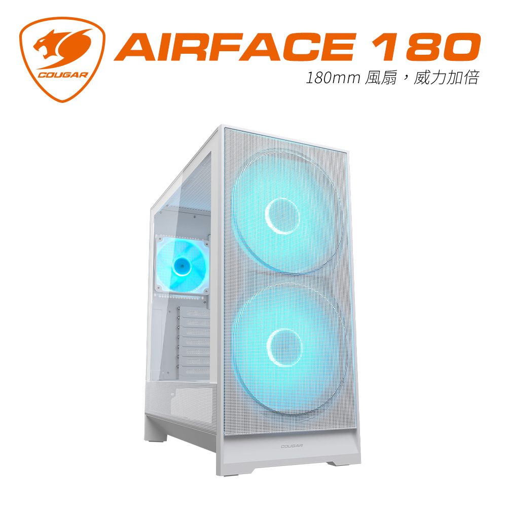 COUGAR Airface 180 白 顯卡長34/U高17/前18cm雙風扇/玻璃透側/支援背插/ATX 機殼