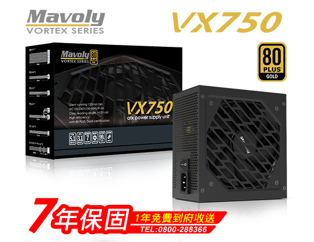 Mavoly VORTEX VX750 750W(80Plus金牌/ATX3.1(PCIe 5.1)/日系電容/七年保)電源供應器