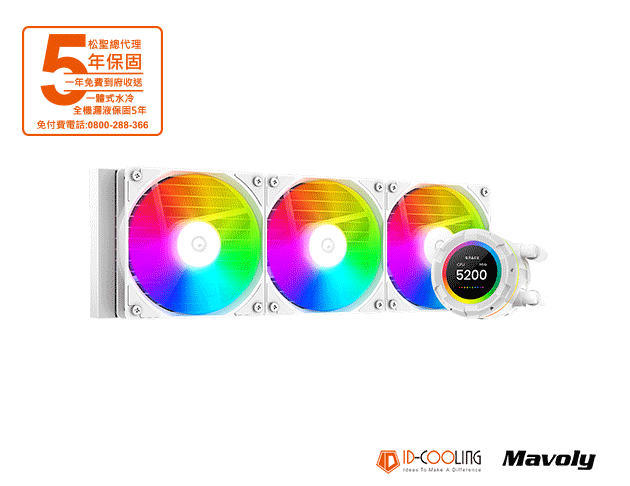 ID-COOLING SL360 XE 白 水冷散熱器/2.1吋LCD/厚:5.2cm/5年 一體式水冷