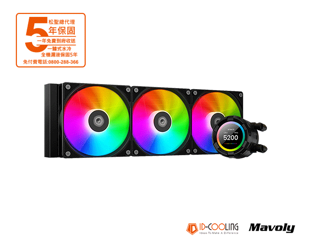 ID-COOLING SL360 XE 黑 水冷散熱器/2.1吋LCD/厚:5.4cm/5年 一體式水冷