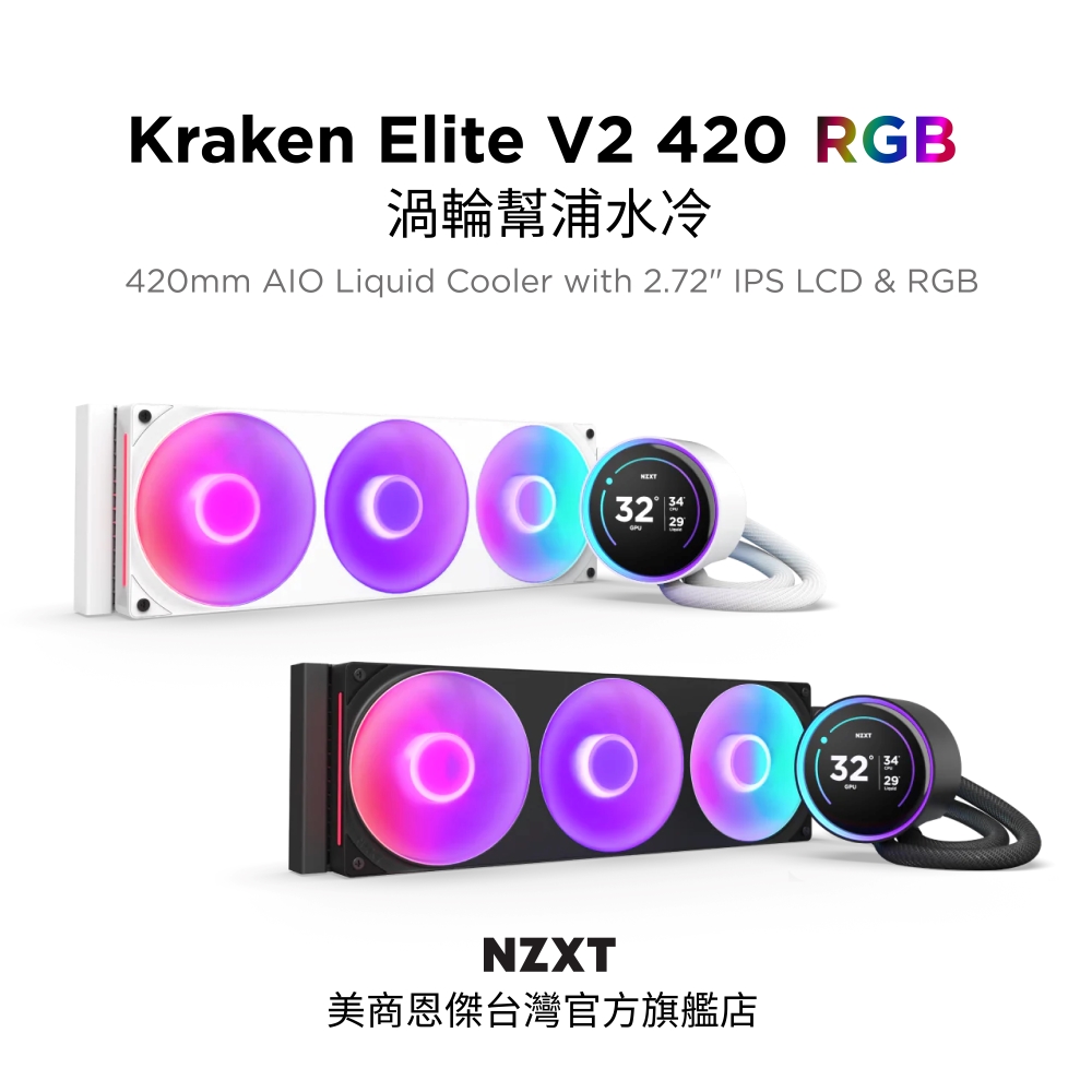 NZXT Kraken Elite 420 RGB 黑 水冷/2.72吋液晶/一體式風扇/6年 一體式水冷