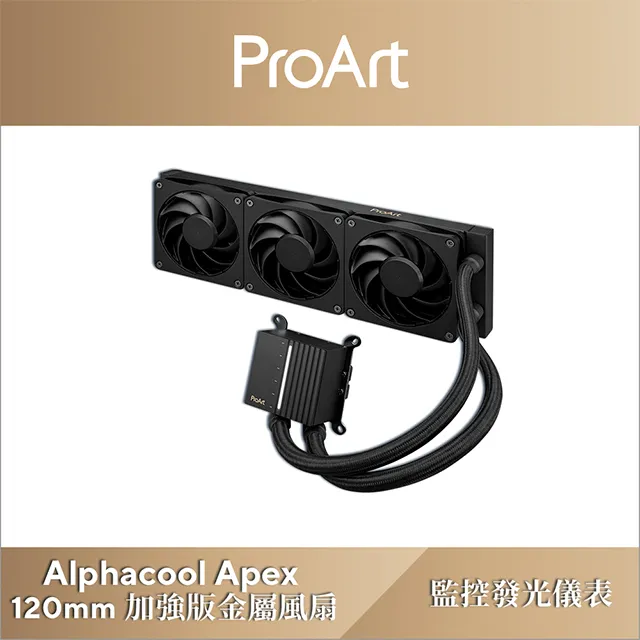 華碩 ProArt LC 360 水冷散熱器 /負載監控發光儀表/Alphacool 效能扇/6年 一體式水冷