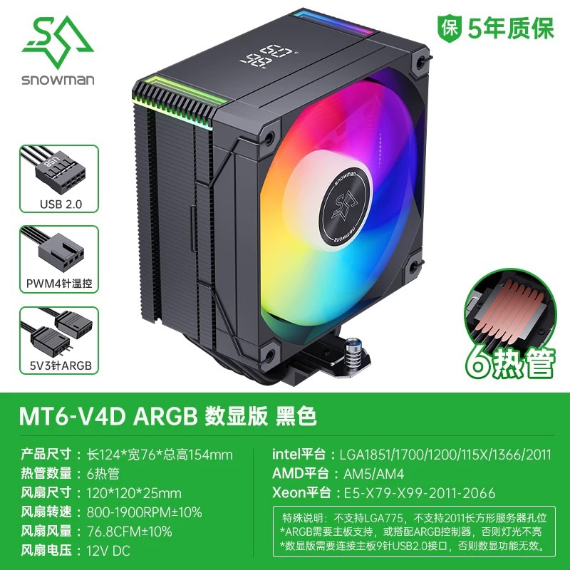 冰曼 MT6-V4D 黑色 散熱器 數位顯示/6熱管/ARGB