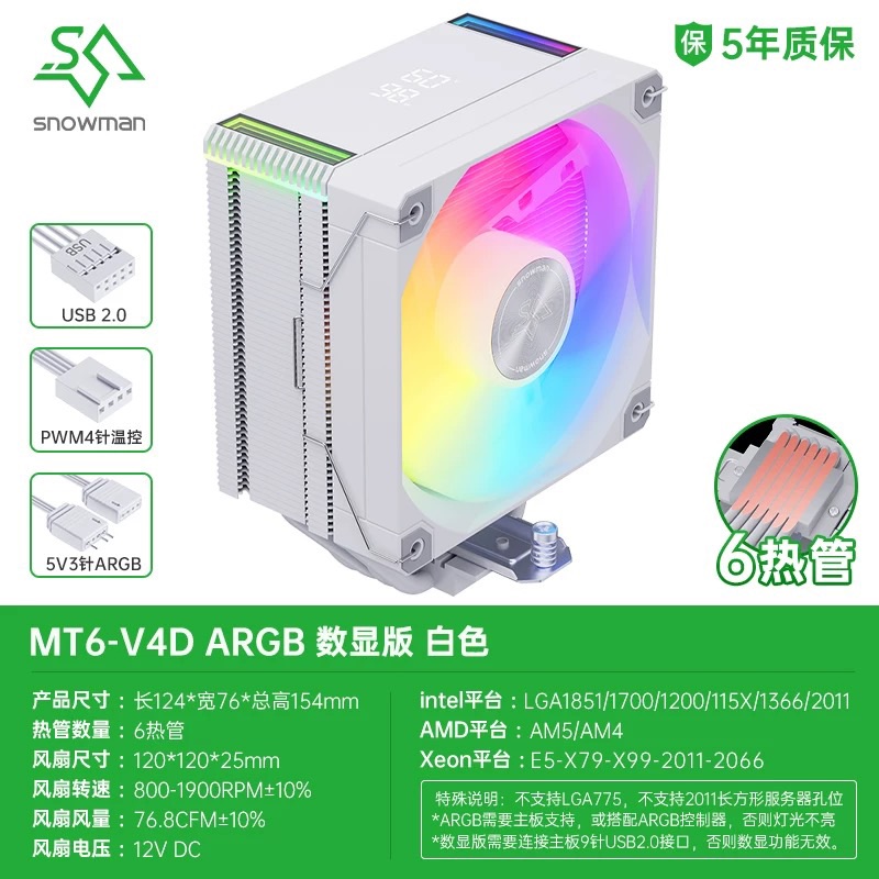 冰曼 MT6-V4D 白色 散熱器 數位顯示/6熱管/ARGB