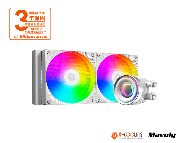 ID-COOLING FX240 INF 白 風扇*2/無限鏡A.RGB冷頭/水管長度400mm/TDP:300W 一體式水冷