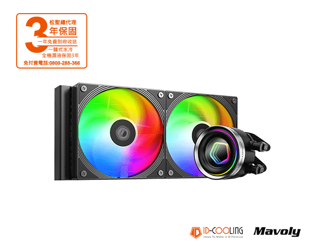 ID-COOLING FX240 INF 黑 風扇*2/無限鏡A.RGB冷頭/水管長度400mm/TDP:300W 一體式水冷