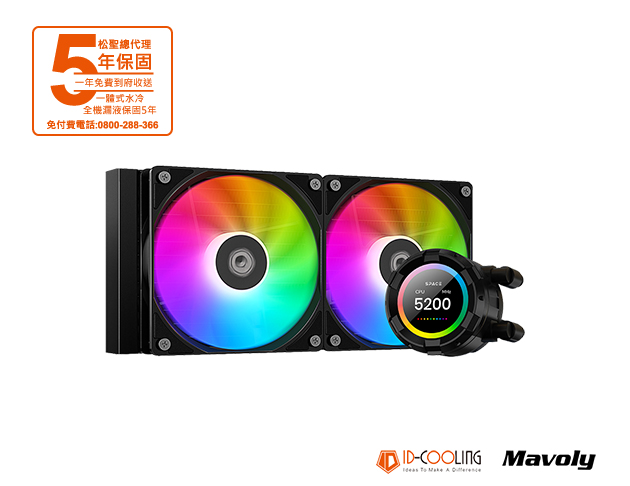 ID-COOLING SL240 XE 黑 水冷散熱器/2.1吋LCD/厚:5.2cm/5年 一體式水冷