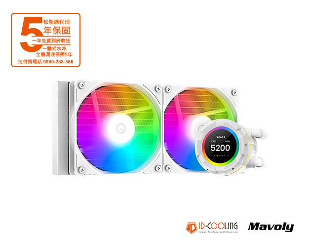 ID-COOLING SL240 XE 白 水冷散熱器/2.1吋LCD/厚:5.2cm/5年 一體式水冷