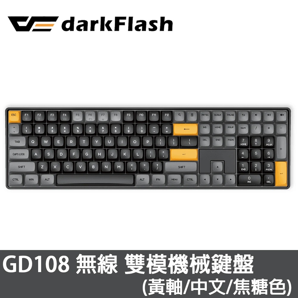 darkFlash GD108 雙模機械式(焦糖色)/有線/無線/黃軸/中文/熱插拔/Pbt/三色/無光