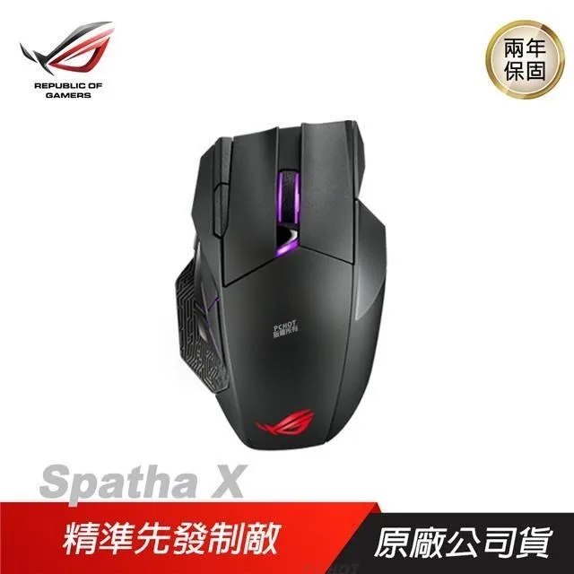 華碩 ROG Spatha X 雙模滑鼠/有線-無線/19000Dpi/12顆按鍵/可更換微動/附充電座/Rgb