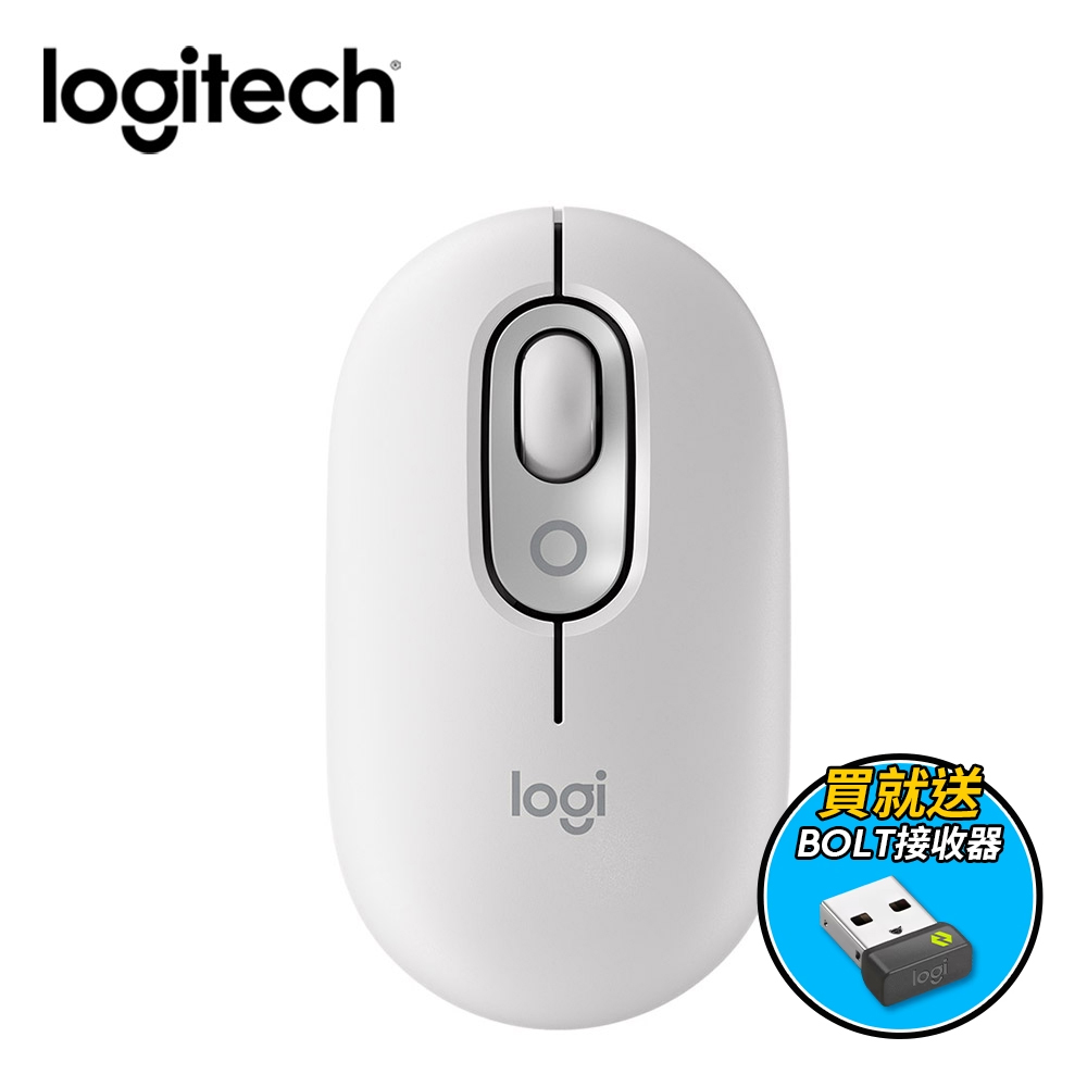 羅技 Pop Mouse 無線藍牙滑鼠(珍珠白)/自訂表情符號/切換3台裝置(贈BOLT接收器)
