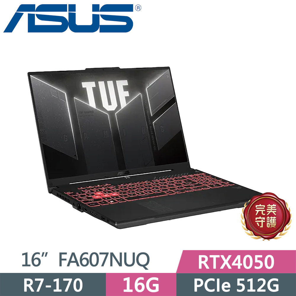 華碩 TUF R7-170/RTX4050/16G/512G/16吋 月影灰 FA607NUQ-0093A170H 電競筆電