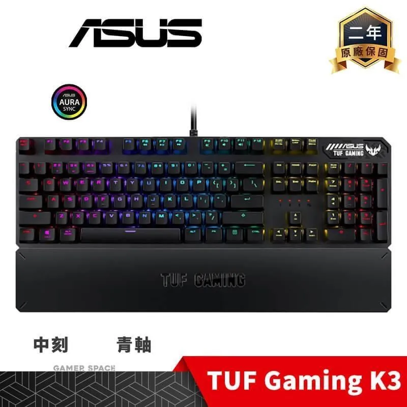 華碩 TUF GAMING K3 機械式鍵盤/有線/青軸/中文/RGB/磁性腕托/鋁合金框架