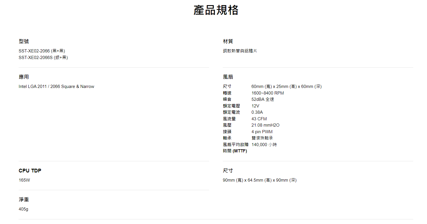 ● 配有四個Ø6mm散熱管和鋁鰭片,提供最佳散熱效果● 搭載PWM雙滾珠軸承風扇● 與Intel LGA 2011 / 2066 Square & Narrow腳位相容