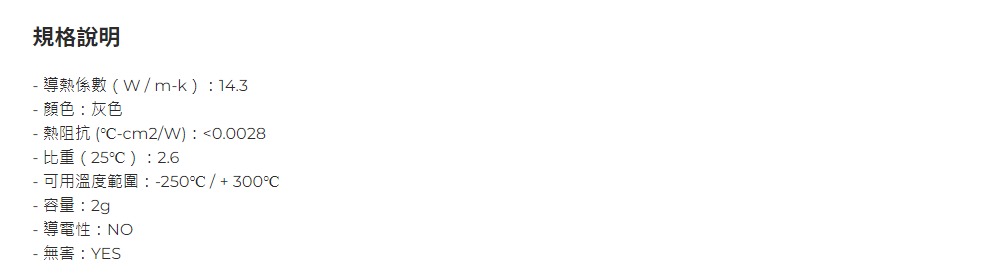 ● 14.3 W / m.k的極高傳熱能力 ● 沒有固化時間意味著散熱器一旦安裝就會保持史詩般的峰值作業● 超長壽命意味著長期無故障使用● 不導電意味著無需擔心短路