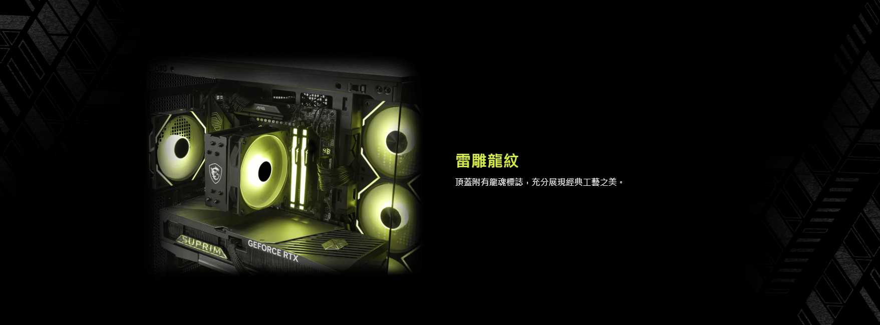 ● CycloBlade7 風扇設計:集中氣流並有效降低噪音。● 採用 Rifle 來福軸承設計,有效減少風扇運轉噪音並延長使用壽命。● ARGB 燈效:透過 MSI CENTER 自訂專屬燈效,打造個人風格。