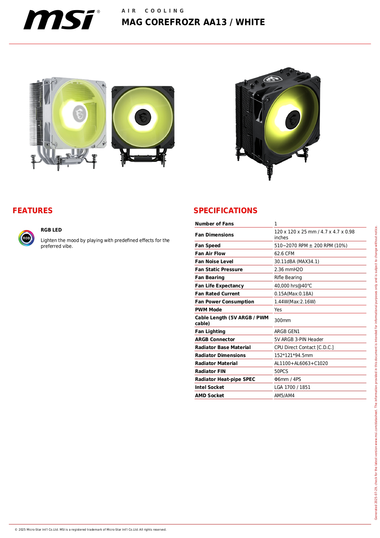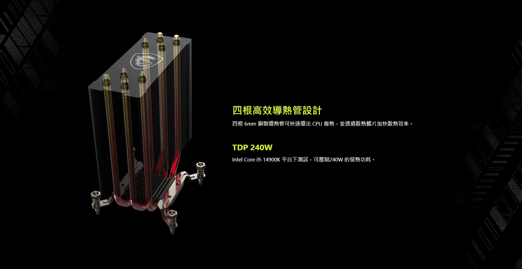 微星 MAG COREFROZR AA13(黑) 散熱器/4導管(6mm)/高15.2cm/TDP:240