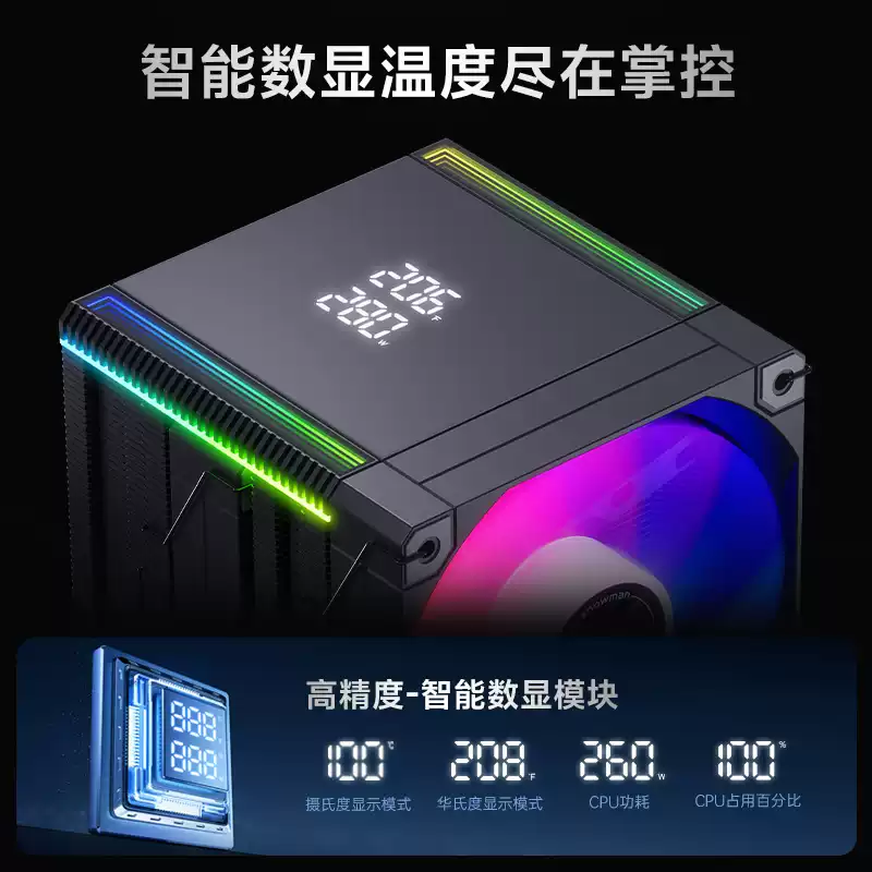 冰曼 MT660-V4D 黑色 散熱器 數位顯示/6熱管/ARGB