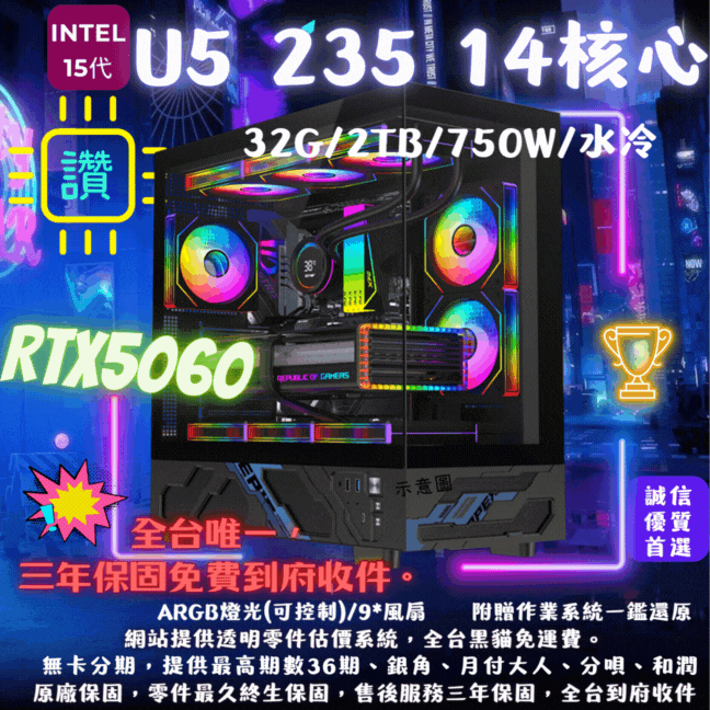 【Vision】瓦爾雞里(U5 235/RTX5060/32G/2TB/水冷)