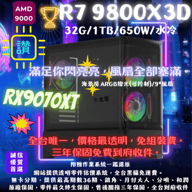 【X05】亮晶晶(R7 9800X3D/RX9070XT/32G/1TB/水冷)