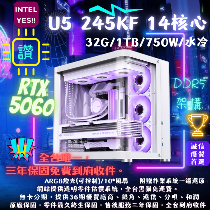 【TK-3】經典純白(U5 245KF/RTX5060/32G/1T/水冷)