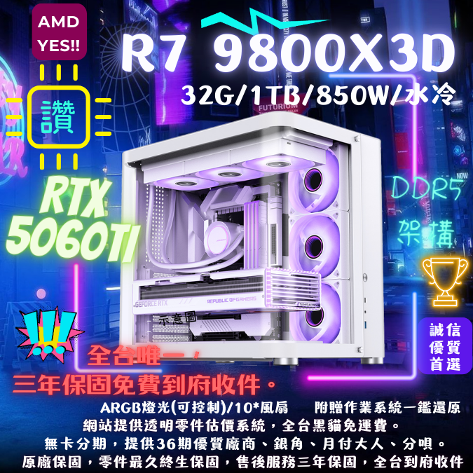 【TK-3】萬年不敗白色款風扇全滿(R7 9800X3D/RTX5060Ti/32G/1T/水冷)