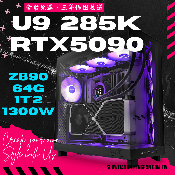 【RTX5090末日】Core Ultra版(9 285K/RTX5090直立展示/64G/1TB*2/水冷)